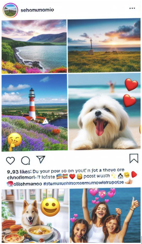 รูปที่ 1. ตัวอย่างโพสต์ Instagram ที่มีองค์ประกอบรูปภาพ ข้อความ และอิโมจิ (สร้างจาก Gemini AI)